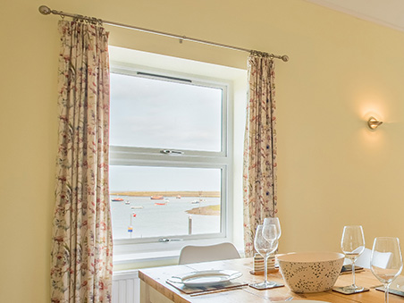 Lovely location all year round with wonderful views of the quay and out to sea. Open plan kitchen, dining and sitting areas all with wonderful sea views. Two bedrooms, one with super king size bed, the other with twin beds. Bathroom with shower over bath. Designated parking space for use by guests to the rear of Pauls Maltings. Wi-Fi, recordable free sat TV.